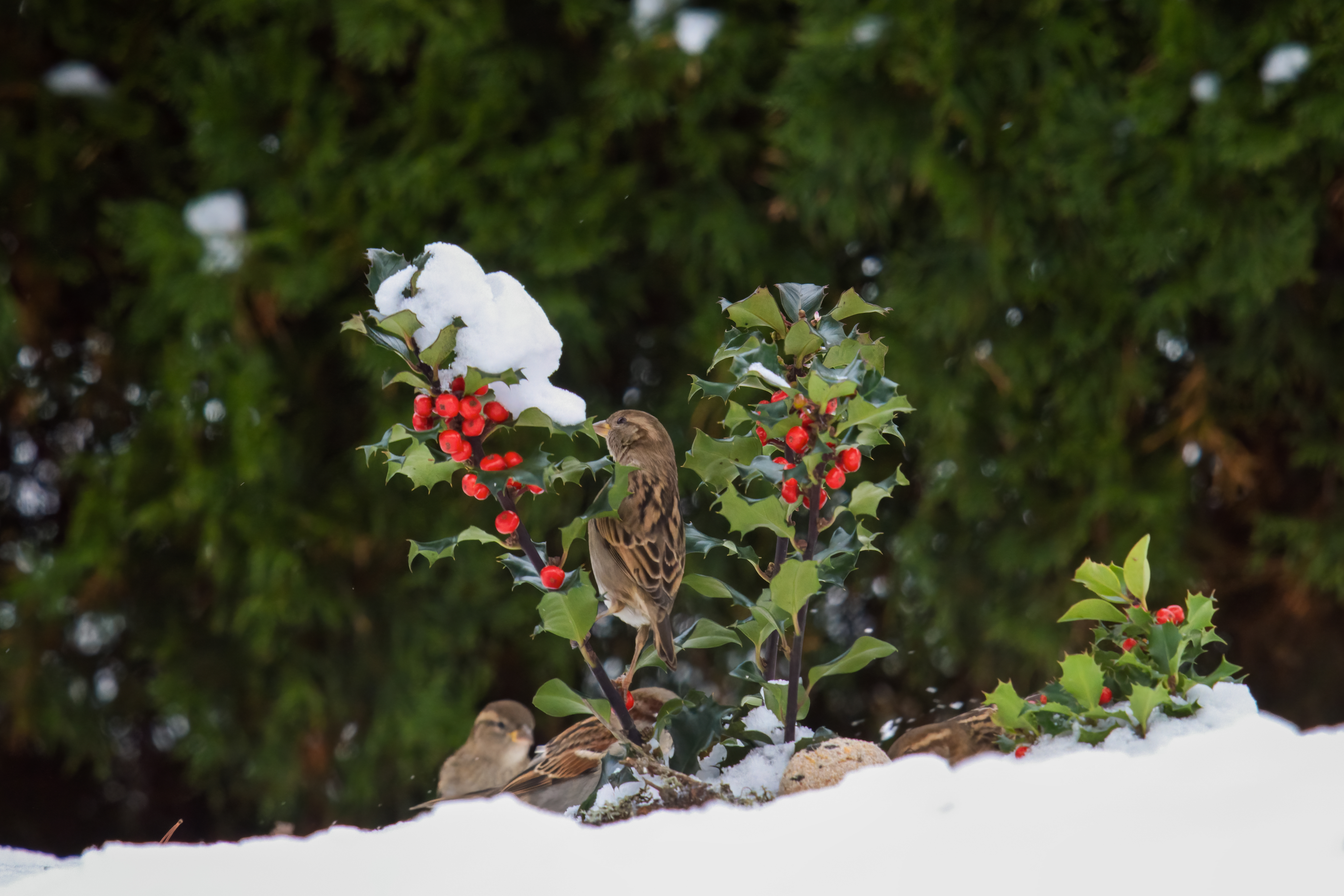 Berry-producing shrubs, seed-bearing flowers, and evergreen trees provide not only a visual feast but also serve as essential food sources for animals throughout the winter.